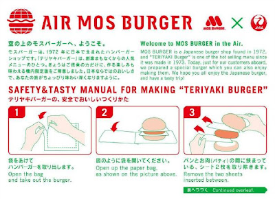 Teriyaki Burger, però visto che sull'aereo non può essere preparato al momento, usano un metodo per renderlo più fresco possibile. Gli ingredienti vengono serviti separati, ci sarà un contenitore con il pane e l'hamburger e poi a parte la lattuga, la salsa